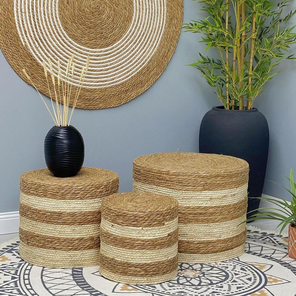 اضيفي لمسة من السحر الريفي إلى غرفة معيشتك بالحصول على مقعد البوف الراقي هذا، مصنوع يدويًا بإتقان بلمسة نهائية هندسية لافتة للنظر، يعزّز من ديكور غرفتك، مصنوع بخبرة من الجوت المتين، يضمن المتانة وسهولة التنظيف والعناية به، مما يجعله إضافة عملية وأنيقة لديكور منزلك.
