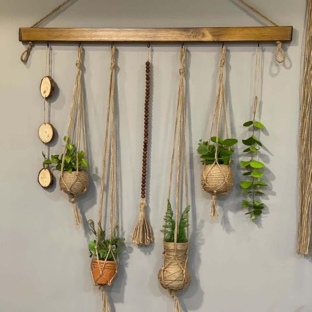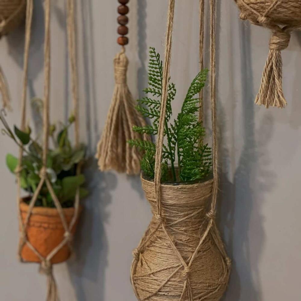 حامل نباتات جداري بخيوط الخيش الطبيعي – لمسة بوهو أنيقة لديكور منزلك