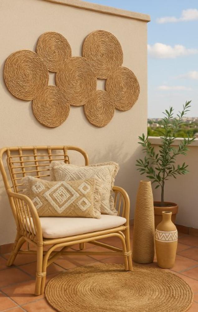 تمتزج مواد القش والراتان الطبيعية بسلاسة مع أي نظام ألوان أو نمط داخلي،