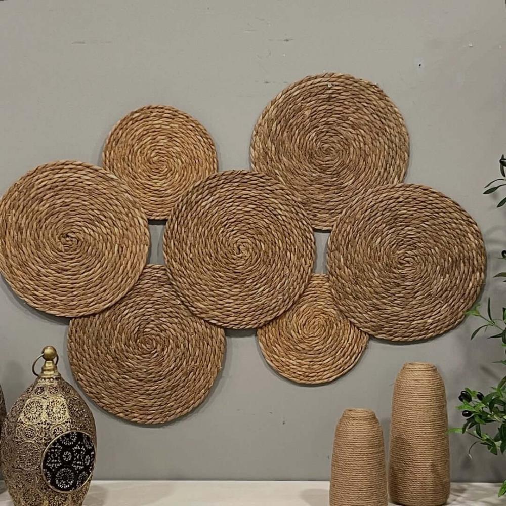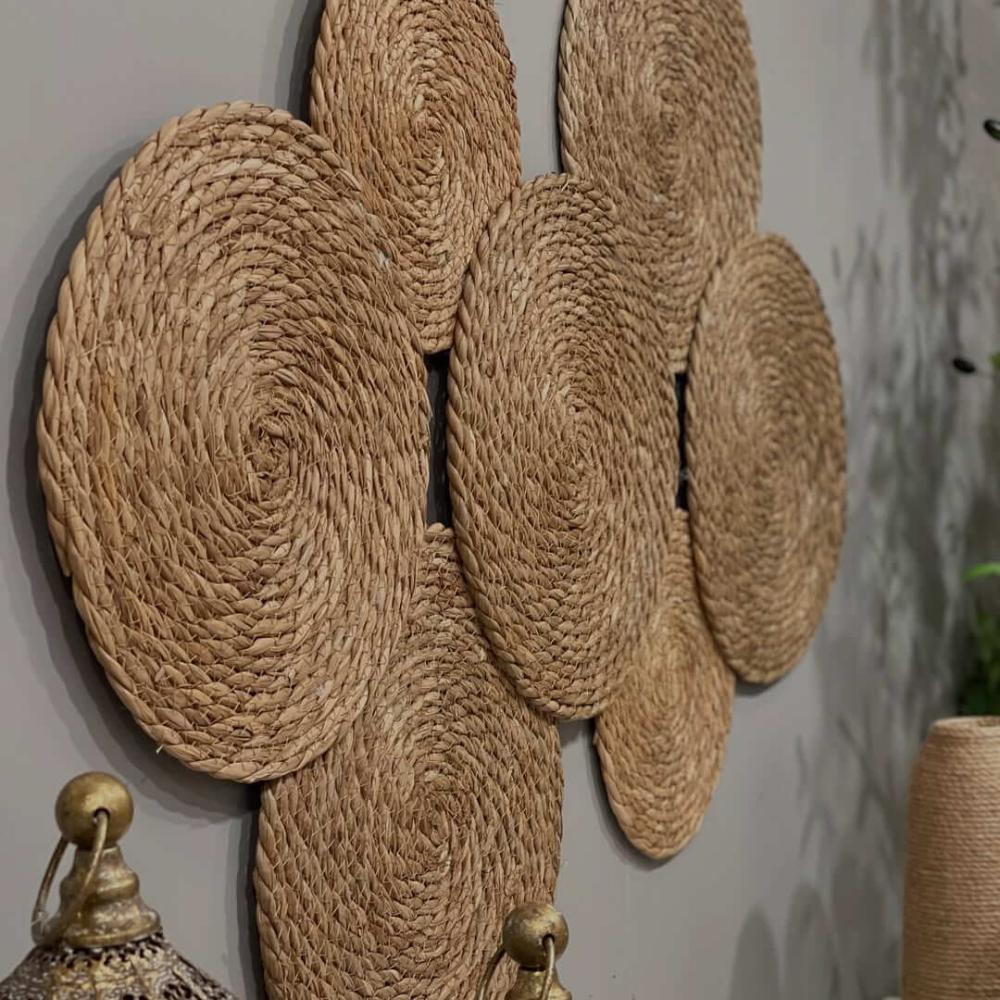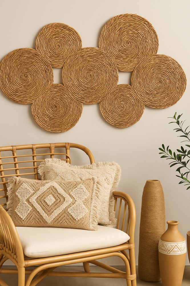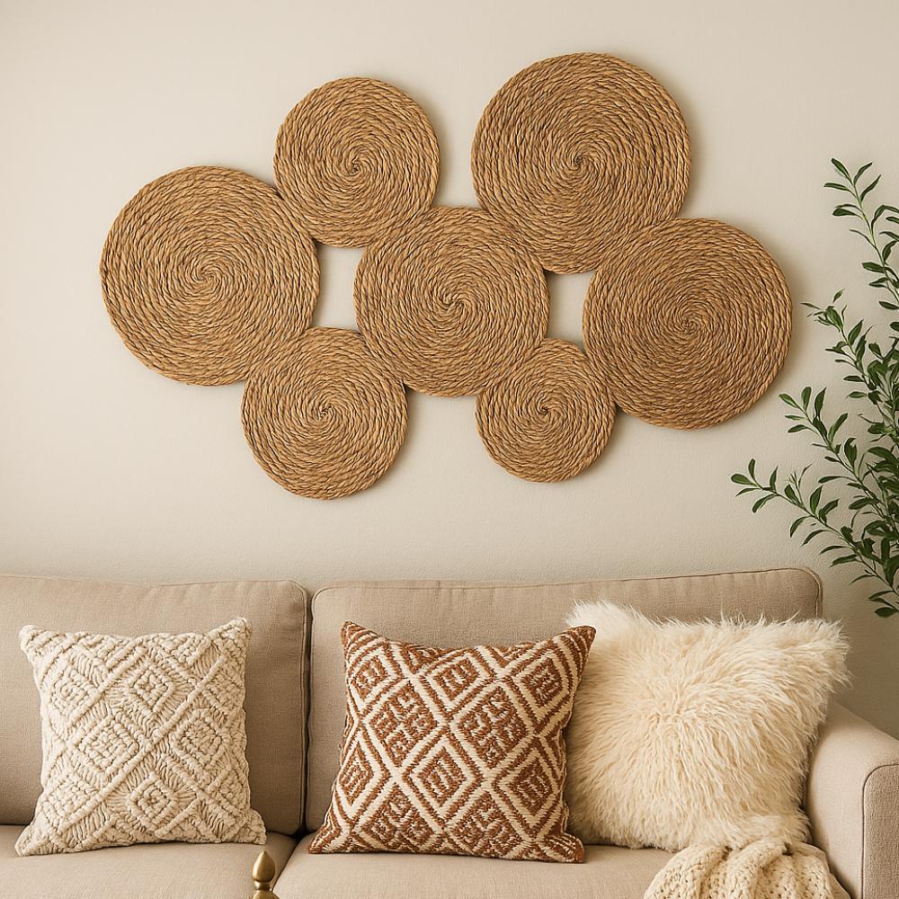 قم بتحويل مساحة المعيشة الخاصة بك إلى واحة بوهيمية من خلال ديكور الحائط المصنوع يدويًا من القش بوهو.