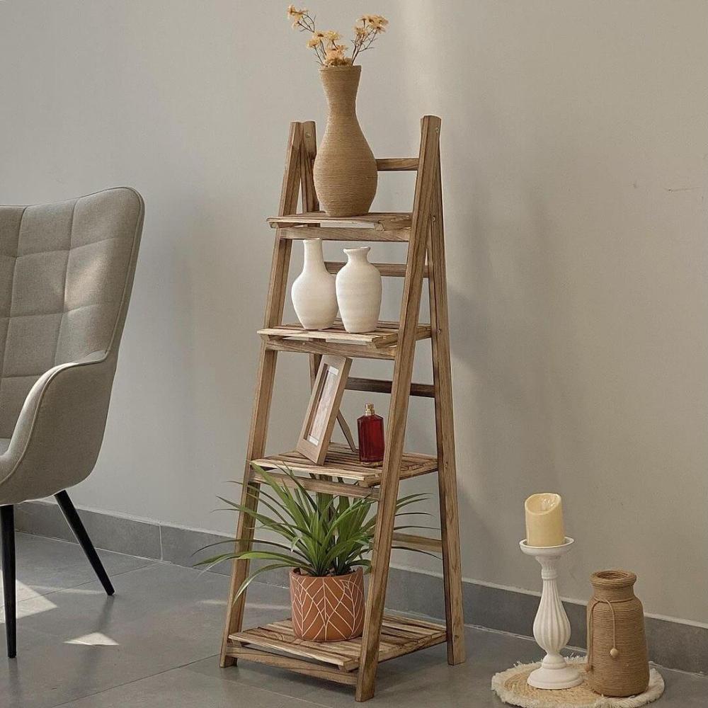أضيفي لمسة جمالية لمنزلك باختيار الرق الخشبي الرائع هذا. يأتي بتصميم عصري مع 4 أرفف قابل للطي تطفو على إطار مفتوح. سوف يعزز من جاذبية غرفة معيشتك بفضل تصميمه المعاصر. قوي ومتين وسهل التنظيف، ويعكس تفرد ذوقك