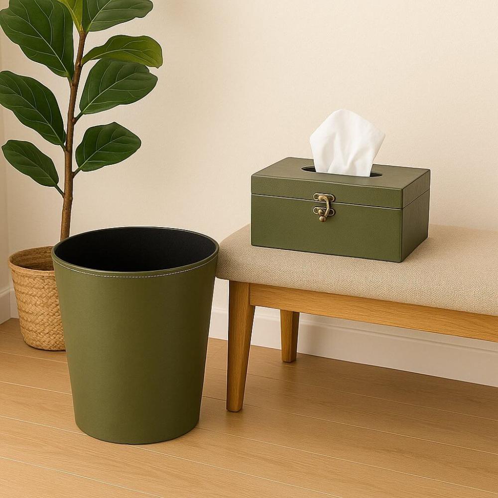 طقم سلة مهملات وعلبة مناديل