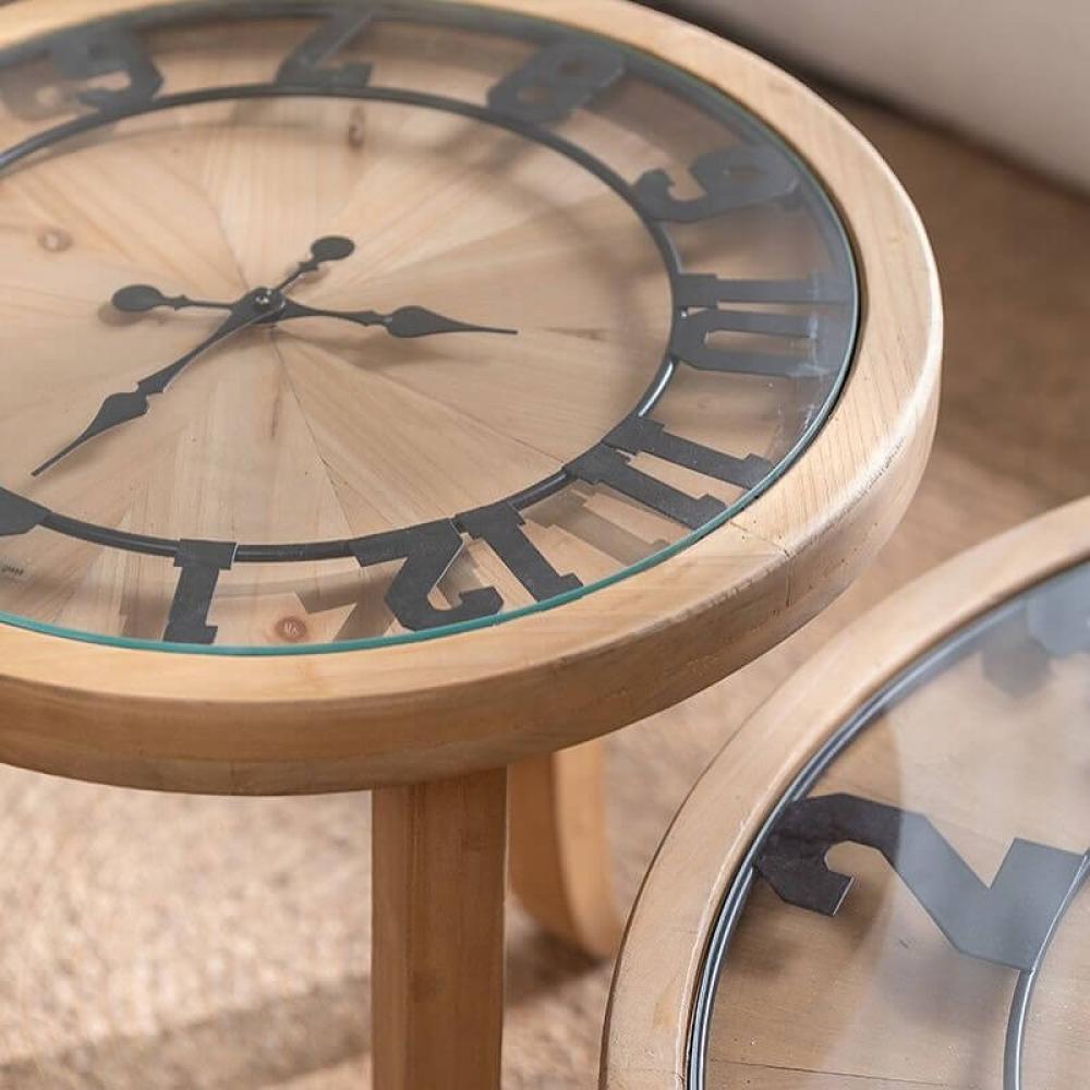 طاولة خشب دائرية كبيرة بساعة CLOCAR