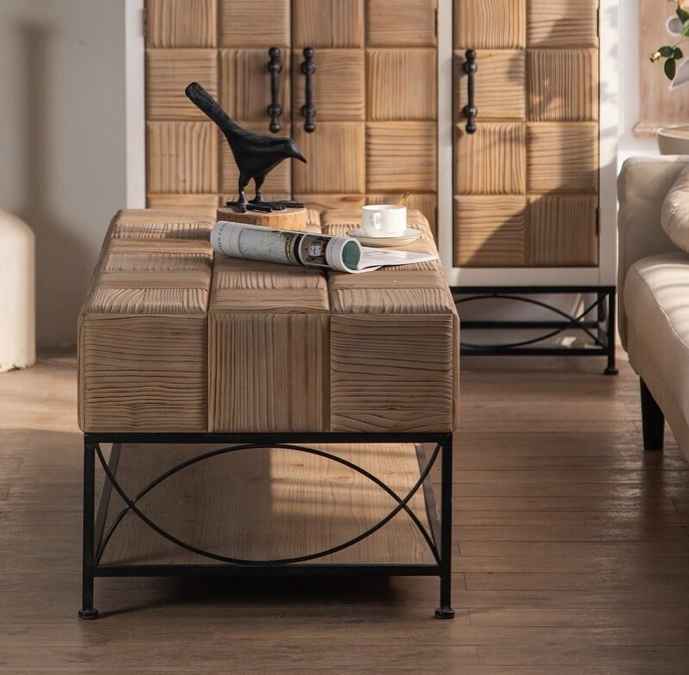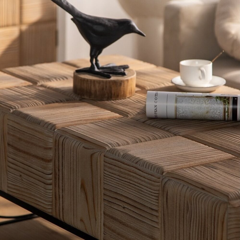 استمتع بمزيج من الأناقة العملية مع طاولة القهوة الخشبية ذات التصميم العصري. تجمع هذه الطاولة بين الخشب الطبيعي الجميل والأرجل المعدنية السوداء، مما يجعلها إضافة مثالية لأي غرفة معيشة أو مساحة مكتبية. تتميز بتصميم عصري مفتوح يعكس جمالها ويعزز جمالية المكان.