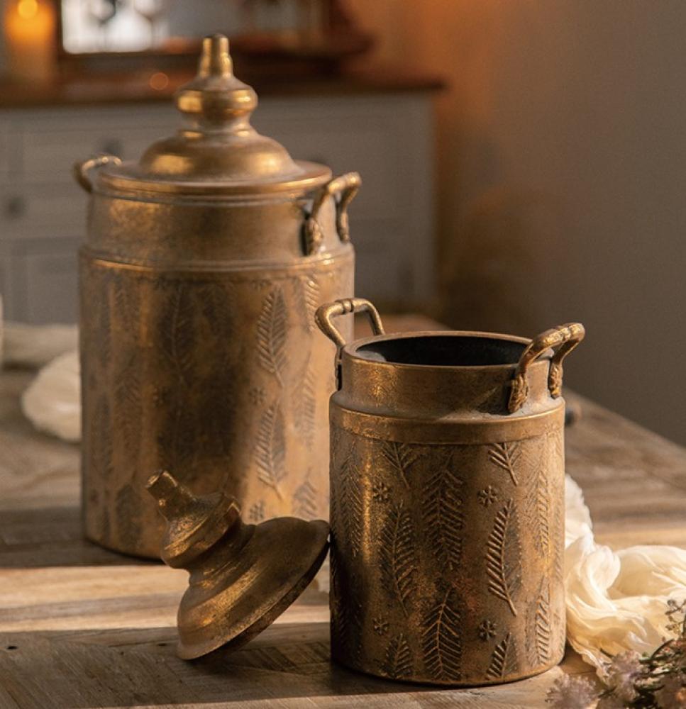 أضف لمسة من الأناقة الكلاسيكية إلى ديكور منزلك مع هذه الفازة المصنوعة من الحديد بتشطيب عتيق فاخر. تتميز بتفاصيل محفورة بدقة مستوحاة من أوراق الطبيعة، وغطاء قابل للإزالة يتيح لك استخدامها كتحفة فنية أو كفازة لتنسيقات الزهور المجففة أو الطبيعية.