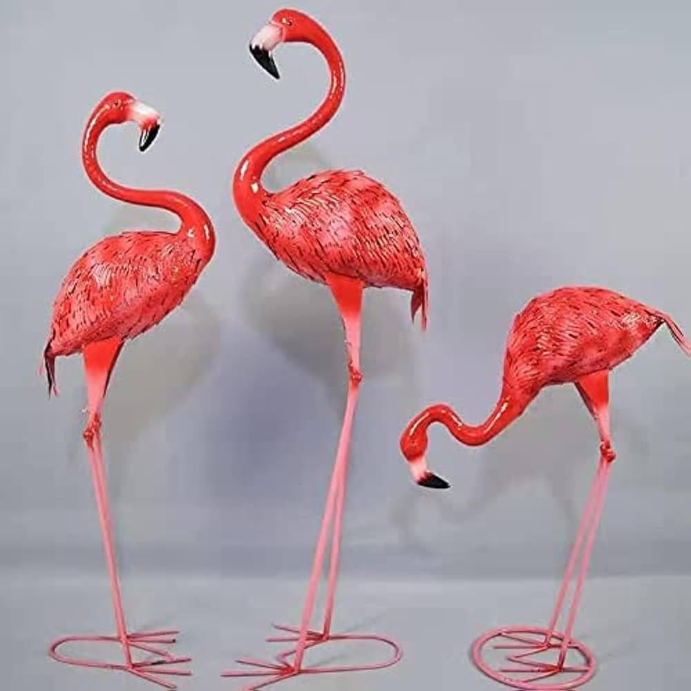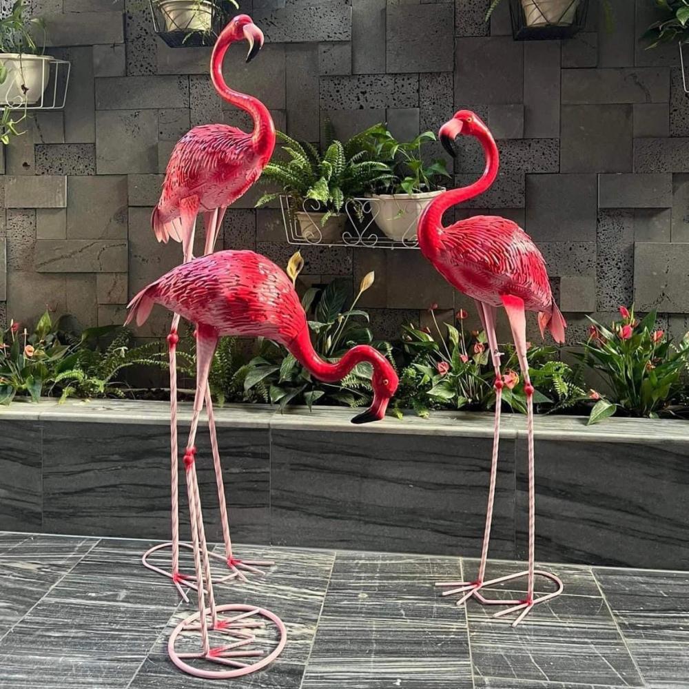 • تمثال فلامينغو للحديقة مصنوع من معدن سميك ومطلي يدويًا بلمسات نهائية آمنة في الهواء الطلق،