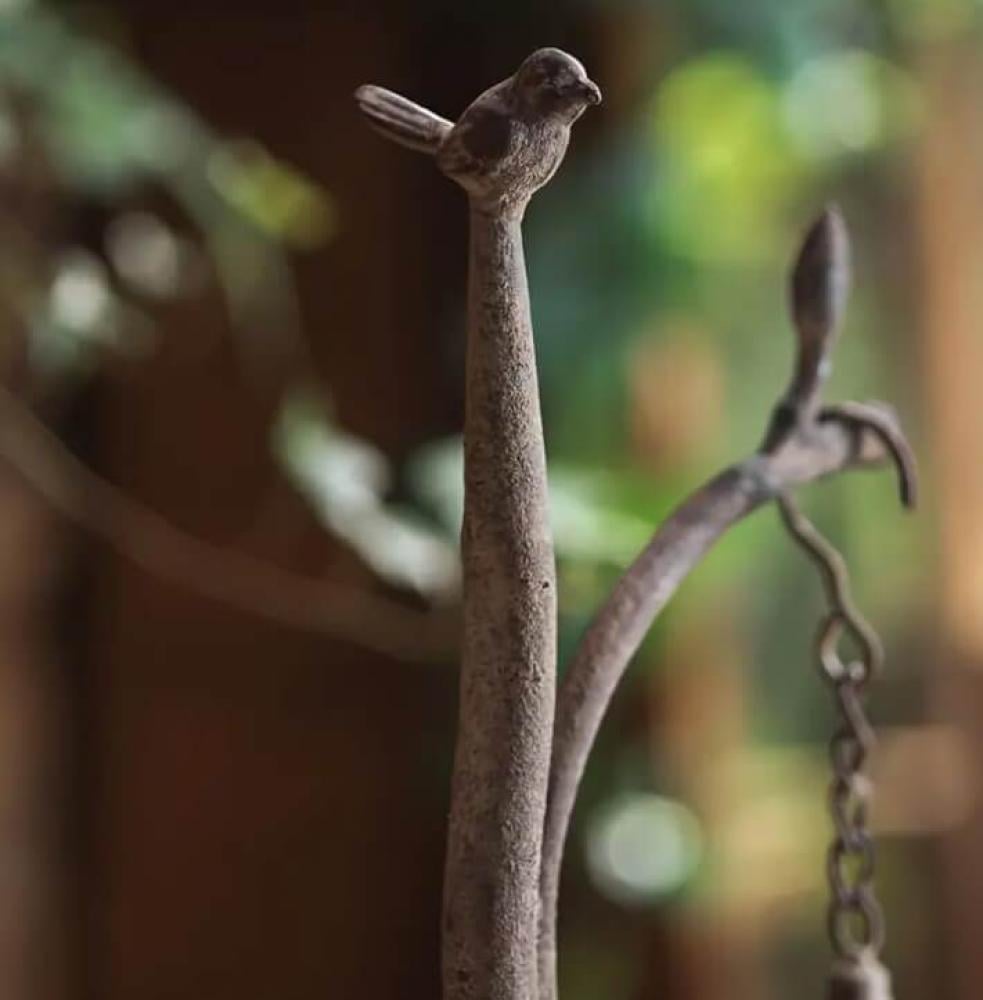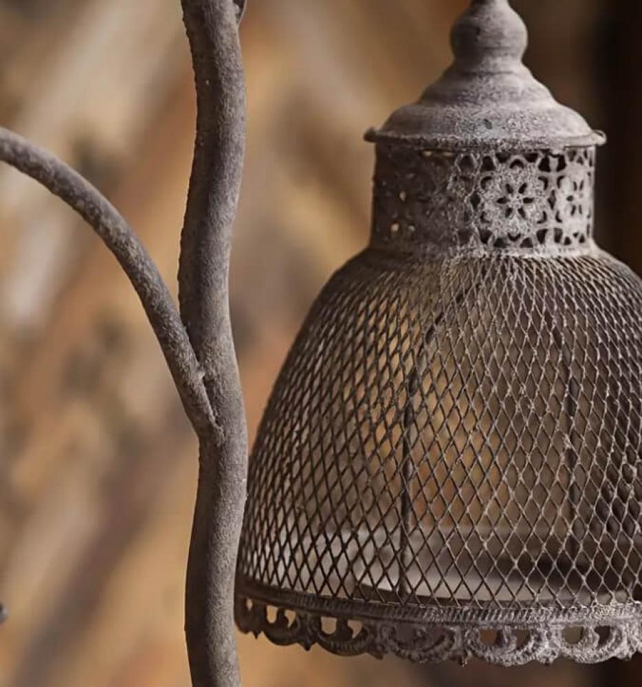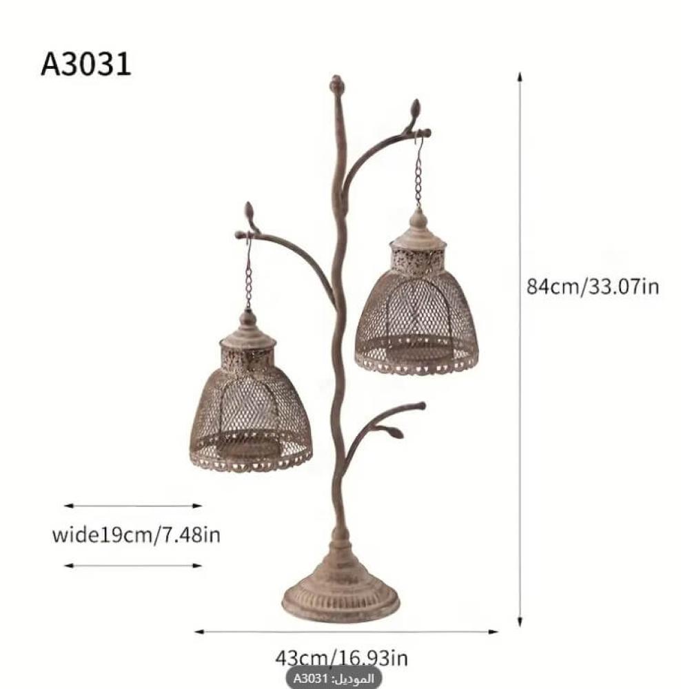 يأتي بتصميم قفصين معدنيين متدليين من هيكل حديدي يشبه غصن الشجرة، بتفاصيل دقيقة وتشطيب ريفي عتيق