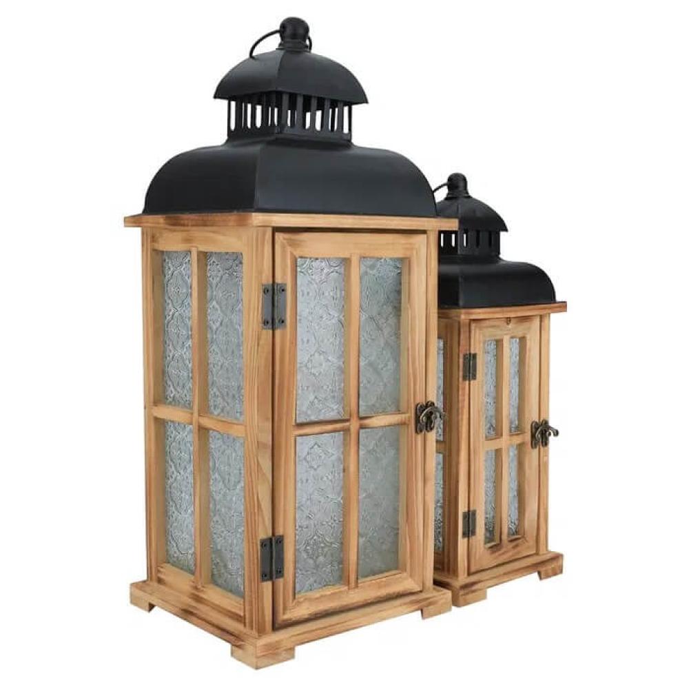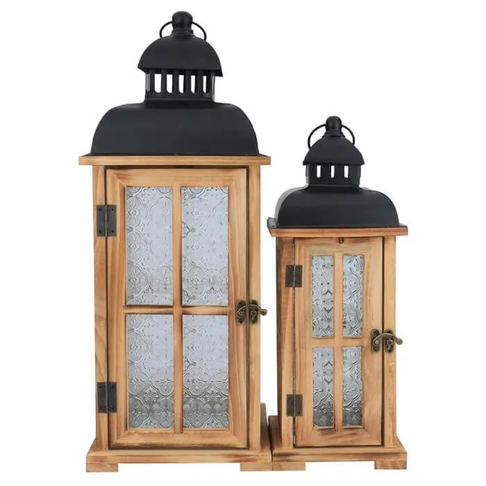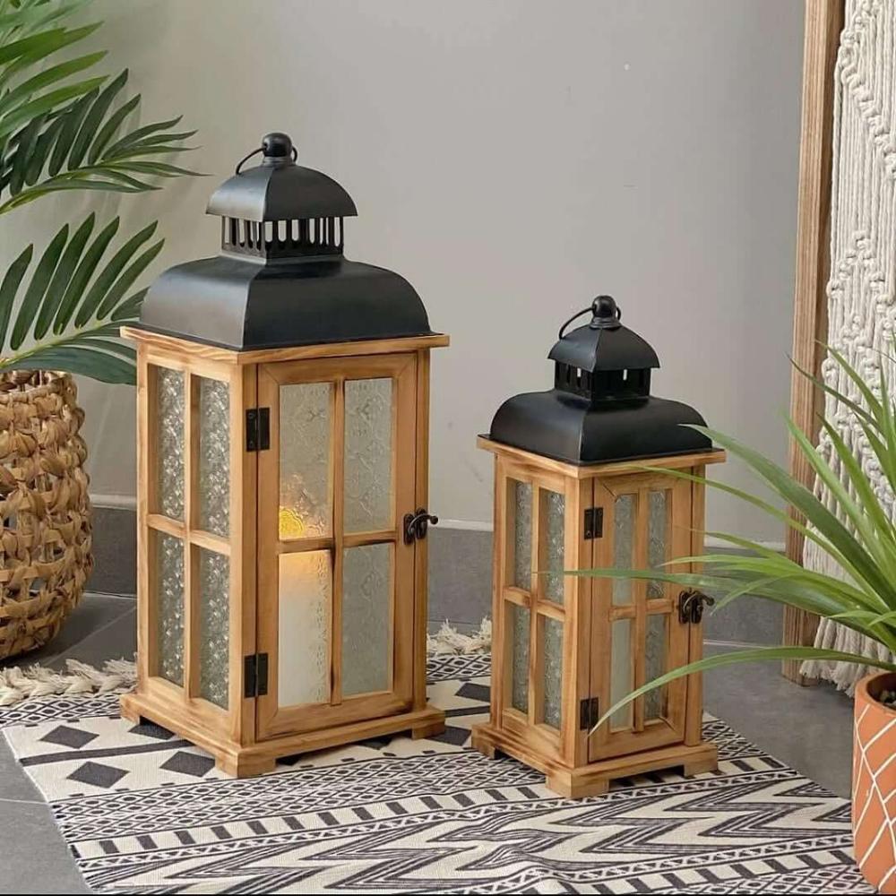 استمتع بمزيج من الأناقة العملية مع مجموعة الفوانيس الخشبية من MABARA ذات التصميم العصري. تجمع هذه المجموعة بين الخشب الطبيعي و الحديد المطلي بااللون الاسود