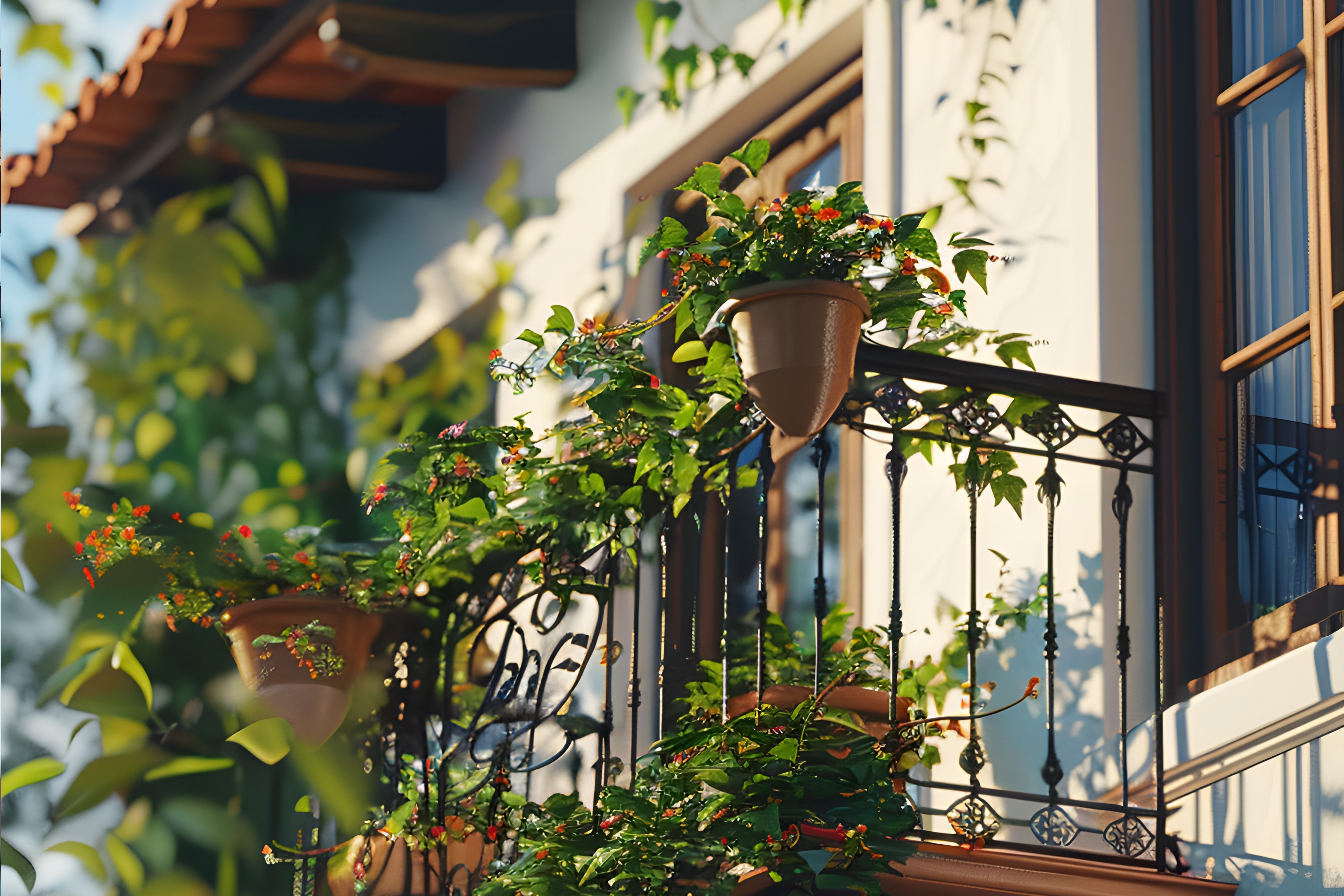 - وزّع النباتات في زوايا الشرفة أو علقها من السقف باستخدام سلال معلقة.